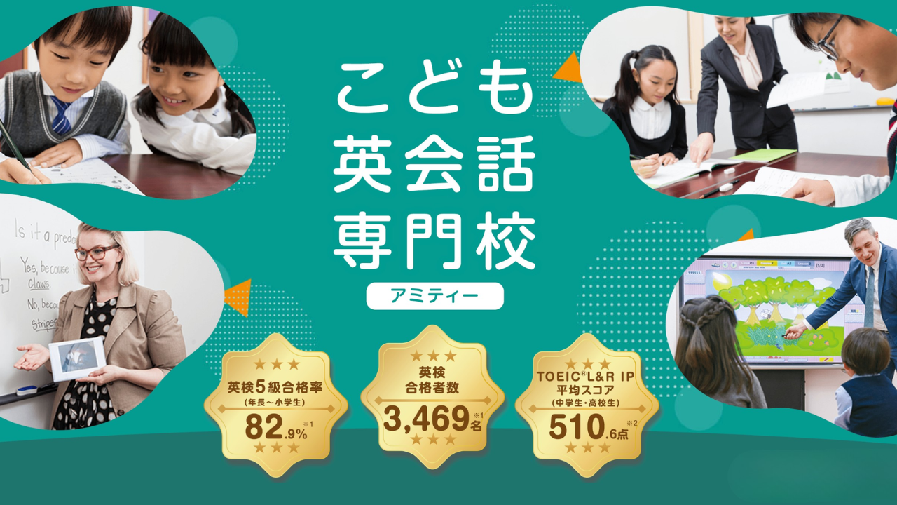 アミティー英会話は「聞く」「話す」「読む」「書く」の4技能を高める子供専門の英語教室です。満6歳〜1ヶ月という早い時期にから受講可能。すべての校舎で無料体験レッスンを受付中です。